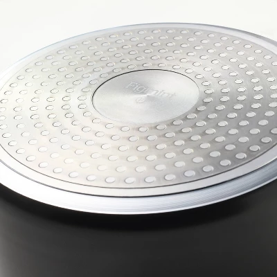 Cook up sauces, soups, pasta dishes and more with ease with this 1.5-Quart Nonstick Hard Anodized Aluminum Sauce Pan with Straining Lid from Figmint™. Featuring a hard anodized aluminum construction that’s ideal for even heat distribution and resists minor scratches and corrosion, this sauce pan also has a smooth, long-lasting nonstick coating (to protect the nonstick coating, use only with silicone, nylon or wood cooking utensils). The pan is induction, gas and electric stove compatible and oven safe up to 450 degrees — and best of all, it also comes with a built-in spout and a convenient straining lid.
