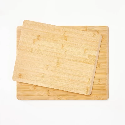 With this 2-Piece Reversible Bamboo Cutting Board Set from Figmint™, you get two different sizes for versatile use. Designed in a natural finish for a clean, classic look, these cutting boards are made of lightweight bamboo for lasting use. The reversible design means you can use both sides, and tapered edges make them easy to lift off of the countertop to minimize dropped ingredients.