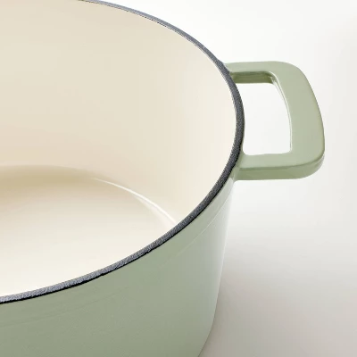 Prepare satisfying dishes for family dinners or larger gatherings with the 7.5-Quart Enamel Dutch Oven from Figmint™. Made from sturdy cast iron with an enamel coating, this classic Dutch oven helps retain heat longer, and it comes with a matching lid with a knob for easy lifting. Oven safe up to 500 degrees and great for use with induction, gas and electric stoves, it features two side handles for easy carrying. Plus, with the beautifully enameled finish, this Dutch oven looks as good as it cooks.