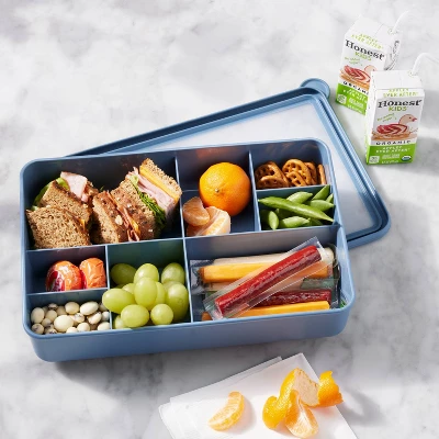 Store a variety of fruits, snacks and other items in the 8-Compartment Plastic Snack Bento Box from Figmint™. This lidded snack box comes with eight divided compartments to help prevent the portions from mixing with each other, and comes with a lid for convenient storage. Made with BPA-free plastic, this large bento box is dishwasher safe for easy maintenance, and can be placed in the microwave without the lid for reheating of food.