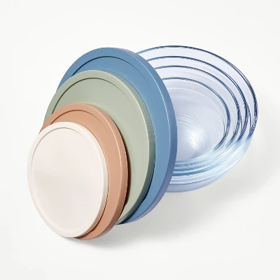 - 8pc nesting glass bowl set comes with 4 bowls and 4 lids