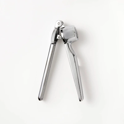 Take the effort out of crushing garlic with this Garlic Press from Figmint™. Made from zinc with a silver finish, this garlic press features a removable chamber with a grid design that can fit whole cloves for easy use and cleaning. A must-have for novice and experienced home cooks alike, the press can be tossed in the dishwasher after use for effortless cleanup.