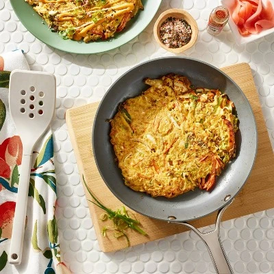 For dishes where you want sauces or juices to seep through as you serve, there’s no better choice than this Soft-Grip Nylon Slotted Turner from Figmint™. Designed in gray with slotted holes, this turner features a nylon construction that provides stick resistance and doesn’t scratch metal, making it suitable for use with all cooking surfaces. The ergonomic soft-grip handle makes the turner comfortable to maneuver as you cook, and a hanging hole in the handle offers a convenient storage option. The turner resists heat up to 450 degrees Fahrenheit, and its dishwasher-safe construction makes it easy to clean.