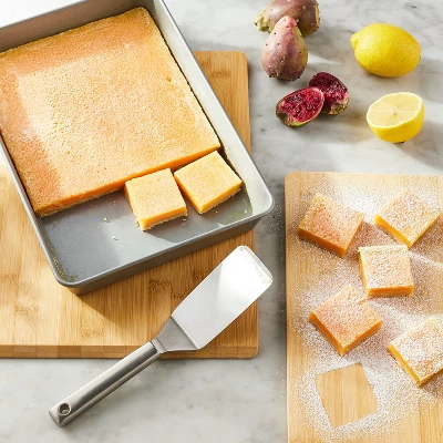 Cutting and serving food is a breeze with this Stainless Steel Brownie Turner from Figmint™. Made from stainless steel with a brushed finish, this versatile brownie turner features a flat, beveled head that easily slides under food, and the sharp front edge cuts right through brownies, lasagna and more. Plus, you can simply toss it in the dishwasher for easy cleanup.